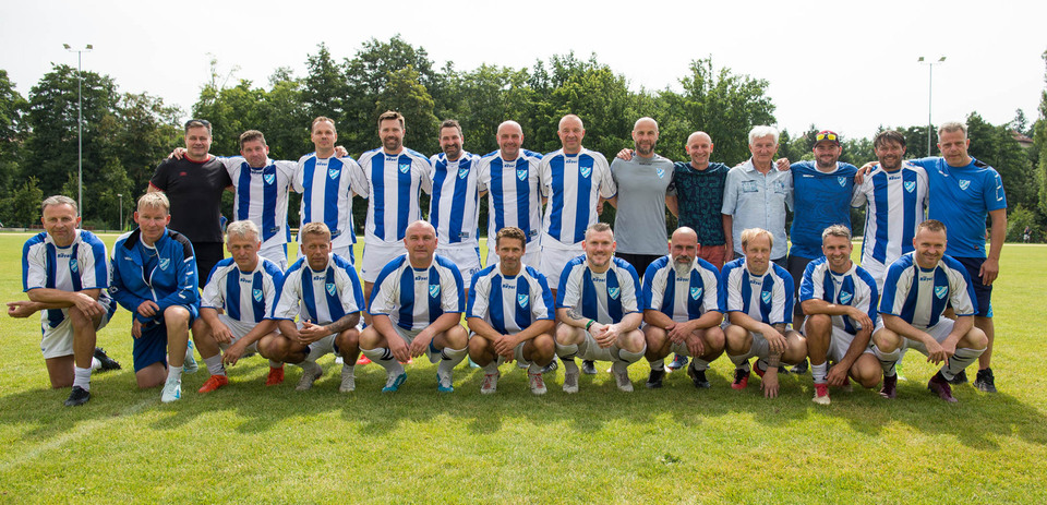 V rámci akce Legenda v modrobílém - oslava 75 let Hvězdy Cheb, se dnes uskutečnilo utkání veteránů nad 40 let! Hvězda v zápase s Kohouti Františkovy Lázně zvítězila 9:4.